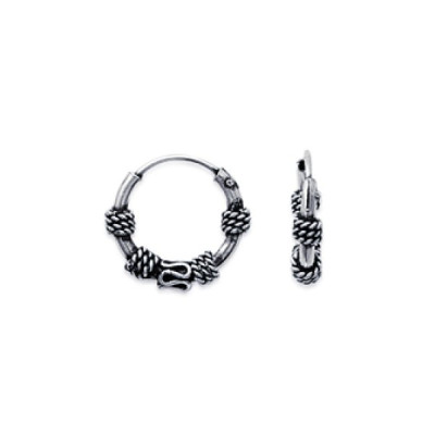 Petites créoles tribales de Bali en argent 925 massif 12mm