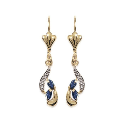 Nouveau Boucles d'oreilles plaqué or 750 bicolore et saphir noir