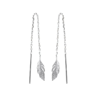 Boucles fils d'oreilles chaîne 45 mm plumes - Leana - argent massif 925 rhodié