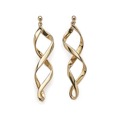 Boucles d'oreilles plaqué or pendantes torsades 46mm x 11mm tiges