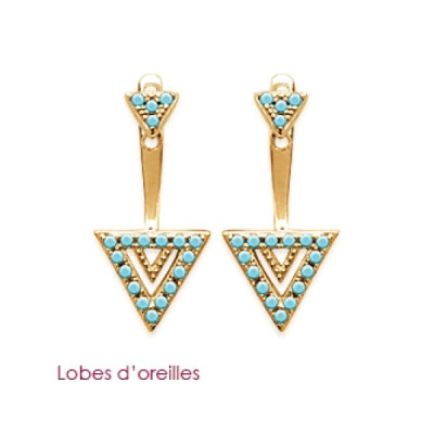 Boucles lobes d'oreilles triangle Plaqué Or pierre couleur turquoise 19mm x 9mm