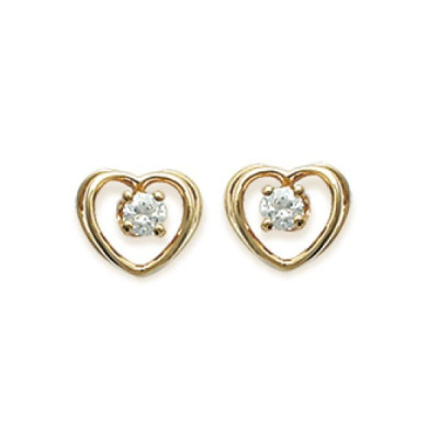 Boucles d'oreilles Plaqué Or 750 coeur puces Oxyde de Zirconium 8mm x 7mm