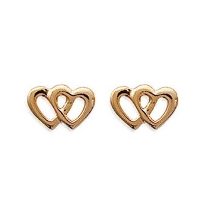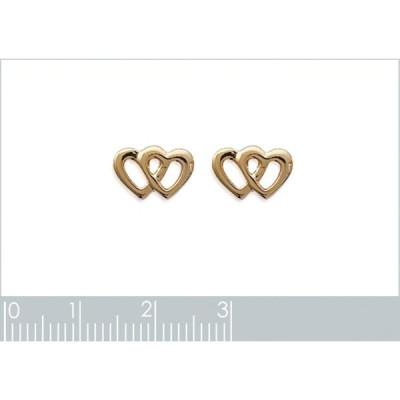 Boucles d'oreilles plaqué or 750 puces d'oreille double coeur 11mm x 7mm