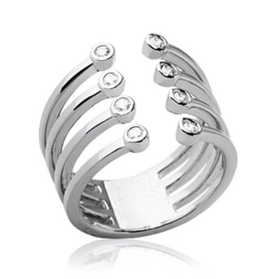 Bague ouverte 4 anneaux femme - argent massif 925 rhodié - zircons sertis