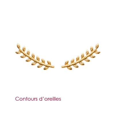 Boucles contours d'oreilles plaqué or 750 branche feuilles laurier 22mm x 5mm