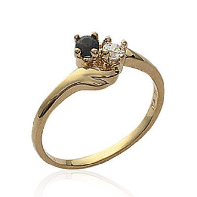 Alliance femme - plaqué or jaune 18 carats - zirconium et pierre véritable noire