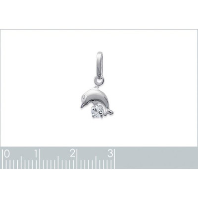 Pendentif dauphin 10mm x 10mm argent massif 925 et cristal blanc