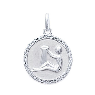 Pendentif médaille signe astrologique Verseau homme 18mm argent rhodié