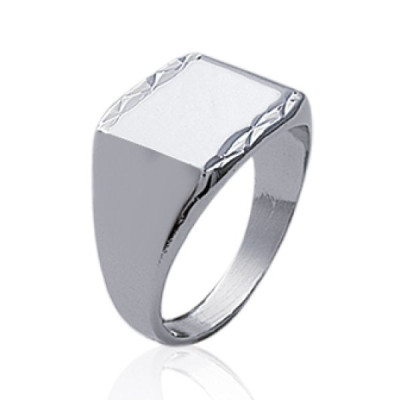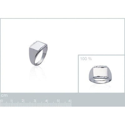 Bague chevalière homme - argent massif 925 rhodié - selle rectangle bords gravés