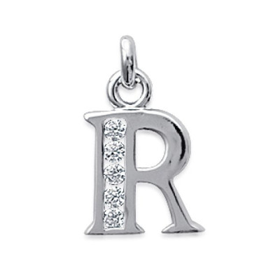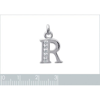 Pendentif initiale majuscule lettre "R" 13mm femme argent rhodié zircons