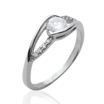 Solitaire femme - argent 925 massif rhodié - pierre sertie anneau scindé