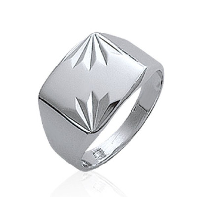 Bague chevalière homme - selle rectangle - argent 925 massif rhodié - épis ciselés