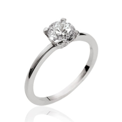 Bague solitaire femme - argent 925/1000 massif rhodié - zirconium rond 4 griffes