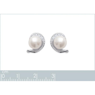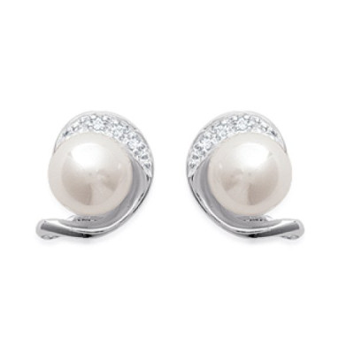 Puces d'oreilles 9 mm - Lyana - argent 925 rhodié - zircons - imitation perles