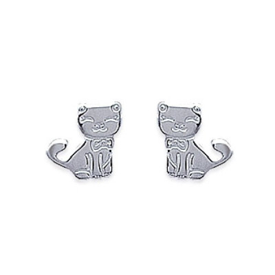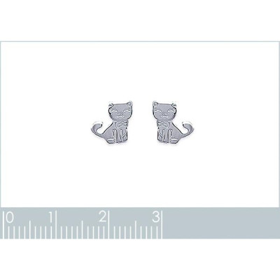 Boucles d'oreilles enfant puces petit chat tiges - Abby - argent rhodié - chaton