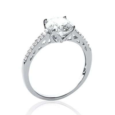 Bague solitaire femme - argent 925 massif rhodié - strass et zirconium 4 griffes
