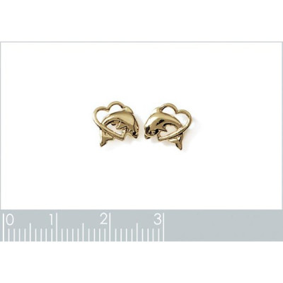 Boucles d'oreilles dauphin dans coeur puces Plaqué Or enfant 8 mm