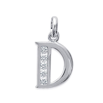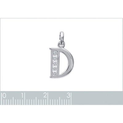 Pendentif femme Lettre "D" majuscule argent 925 rhodié et zircons 13mm