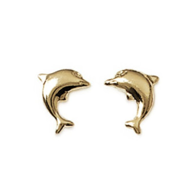 Boucles d'oreilles plaqué or 750 puces enfant dauphins 10mm x 7mm