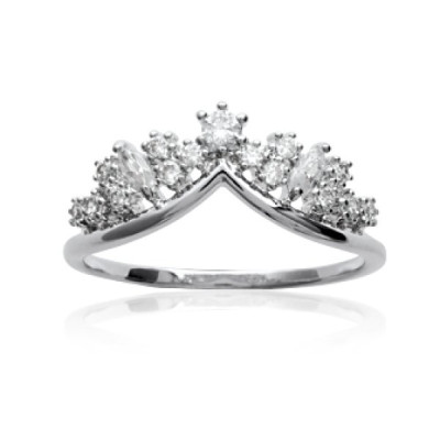 Bague alliance sertie femme - argent 925/000 massif rhodié - couronne zircons