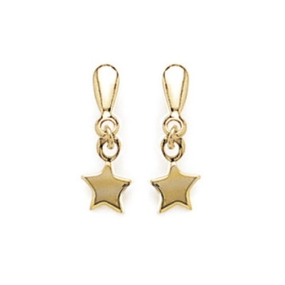 Nouveau Boucles d'oreilles pendantes étoiles plaqué or jaune 750