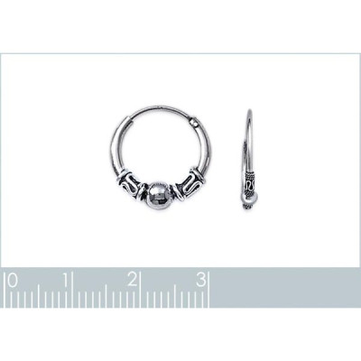 Créoles de Bali ethniques 14mm avec boule en argent 925 massif