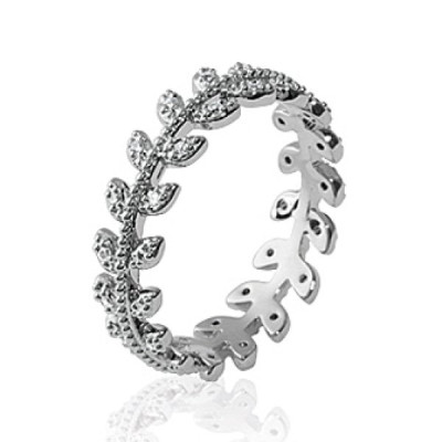 Alliance lauriers sertie femme - argent massif 925 rhodié - oxyde de zirconium