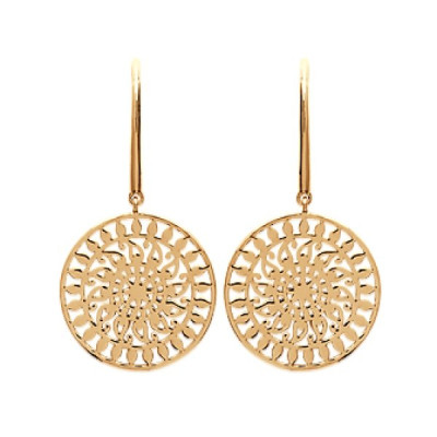 Nouveau Boucles d'oreilles pendantes crochets arabesque rondes dentelle plaqué or 750 3 microns