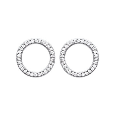 Boucles d'oreilles rondes 12 mm tiges clous - Gaia - argent 925 rhodié - zircons