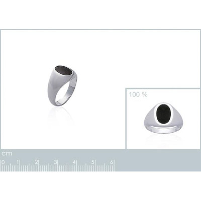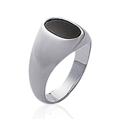 Chevalière ovale homme - argent 925 massif rhodié - pierre genre onyx noir