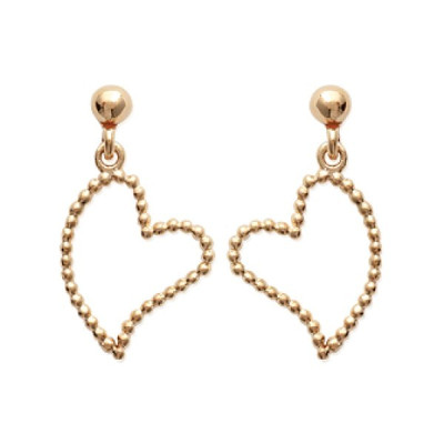 Boucles d'oreilles coeurs pendantes Plaqué Or jaune 750 tiges 22mm x 12mm