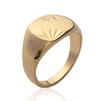 Chevalière homme bords arrondis - plaqué or 750 - angles épis ciselés