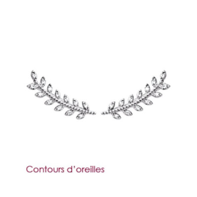 Contours d'oreilles 20 mm feuilles laurier - Imene - argent 925 rhodié - zircons