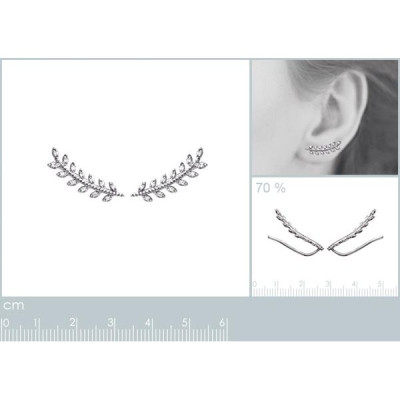 Nouveau Contours d'oreilles 20 mm feuilles laurier - Imene - argent 925 rhodié - zircons