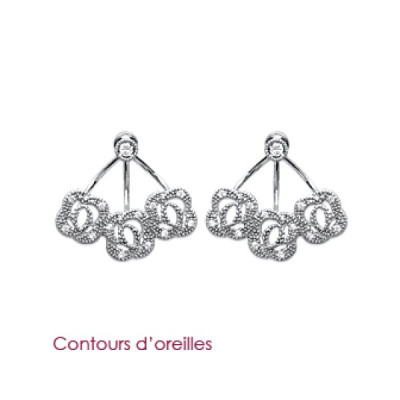 Contours d'oreilles 16 mm fleurs - Klara - argent massif 925 rhodié - zircons
