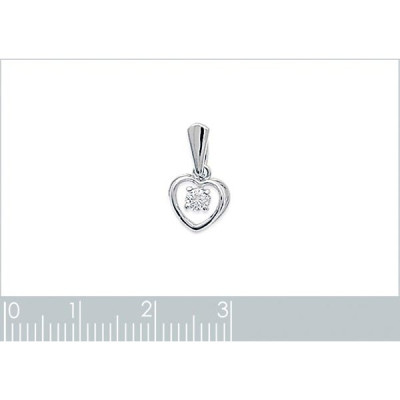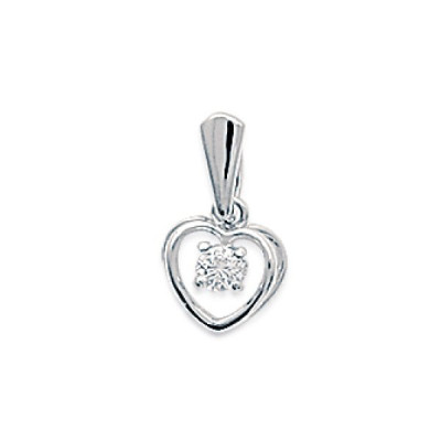 Pendentif Coeur argent massif 925 rhodié 15mm x 8mm serti d'un Zircon