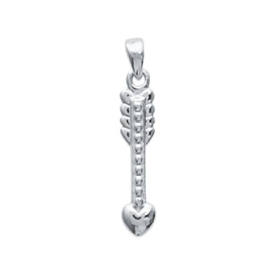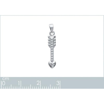 Pendentif Flèche pointe Coeur argent massif 925 rhodié 16mm x 3mm
