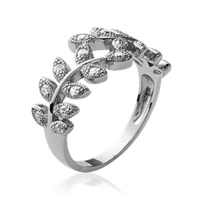 Alliance femme - argent 925 massif rhodié - couronne de lauriers zircons CZ