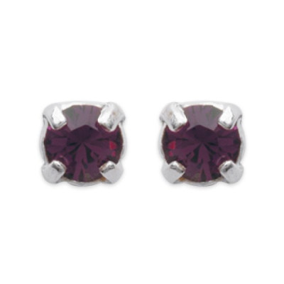 Boucles d'oreilles tige puces clous 3 mm - Alya - argent massif - cristal violet