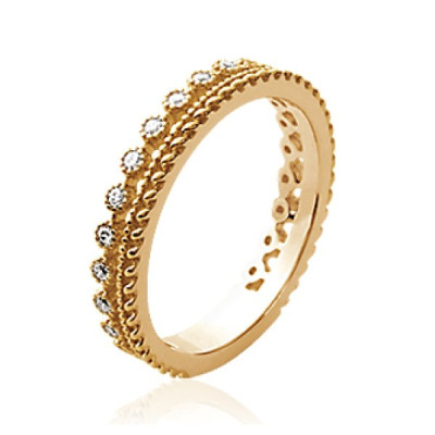 Bague alliance couronne femme - plaqué or jaune 750 - oxyde de zirconium