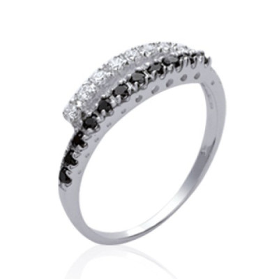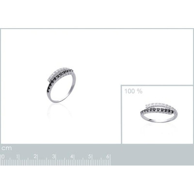 Alliance fiançailles femme - argent massif 925 rhodié - zircons noirs et blancs