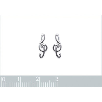 Nouveau Boucles d'oreilles puces 12 mm clé de sol - Djena - argent massif 925 rhodié