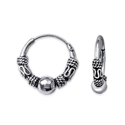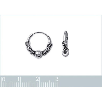 Petites créoles ethniques 12mm de Bali boule argent 925 massif