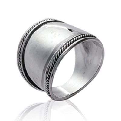 Bague anneau large femme - argent massif 925 - bohème gitane
