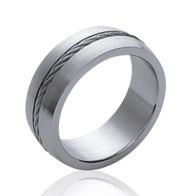 Bague alliance de fiançailles ou mariage pour homme en acier inoxydable.