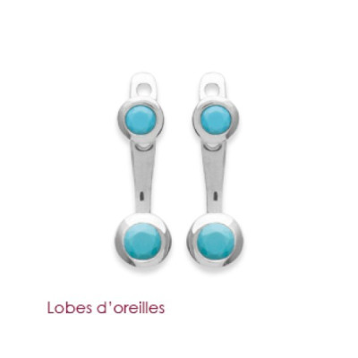 Boucles lobes d'oreilles 15 mm - Ana - argent 925 rhodié - pierre bleu turquoise