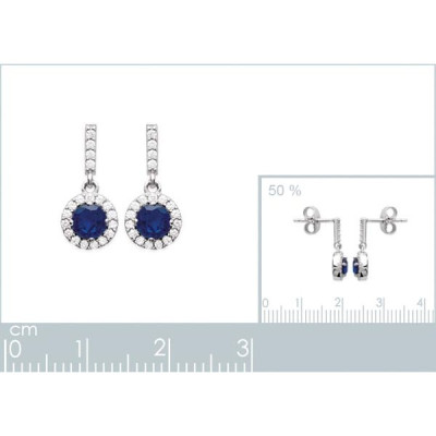 Boucles d'oreilles pendantes 14 mm - Tiana - argent 925 rhodié - zircon bleu