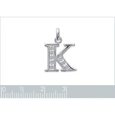 Pendentif initiale lettre "K" 13mm femme majuscule argent rhodié zirconium