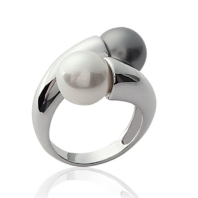 Bague anneau femme - argent 925/1000 massif rhodié - Perles grise et noire