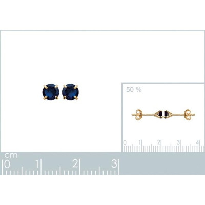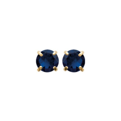 Boucles clous d'oreilles Plaqué Or Pierre de synthèse bleue 4 mm ronde 4 griffes